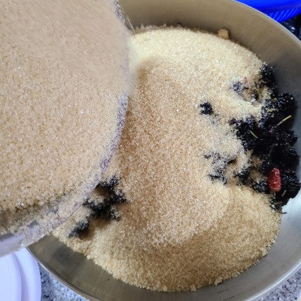 닥시럽을 만들어서 지금은 뽕의 계절, 뽕나무의 열매, 짙은 보라색의 열매, 산딸기처럼 둥글고, 서로 달라붙어, 뽕처럼 대중적이고, 개별적으로 뽕을 먹는 방법은 아니지만, 생으로 먹을 수도 있다. 과일.