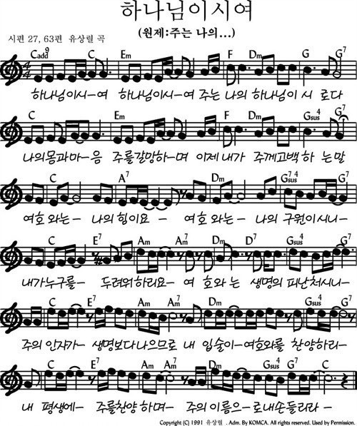 내 평생에 주를 찬양하고 주의 이름으로 내 손을 들리이다.
